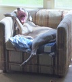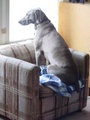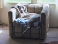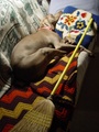 on the forbidden couch - broom placed to prevent this